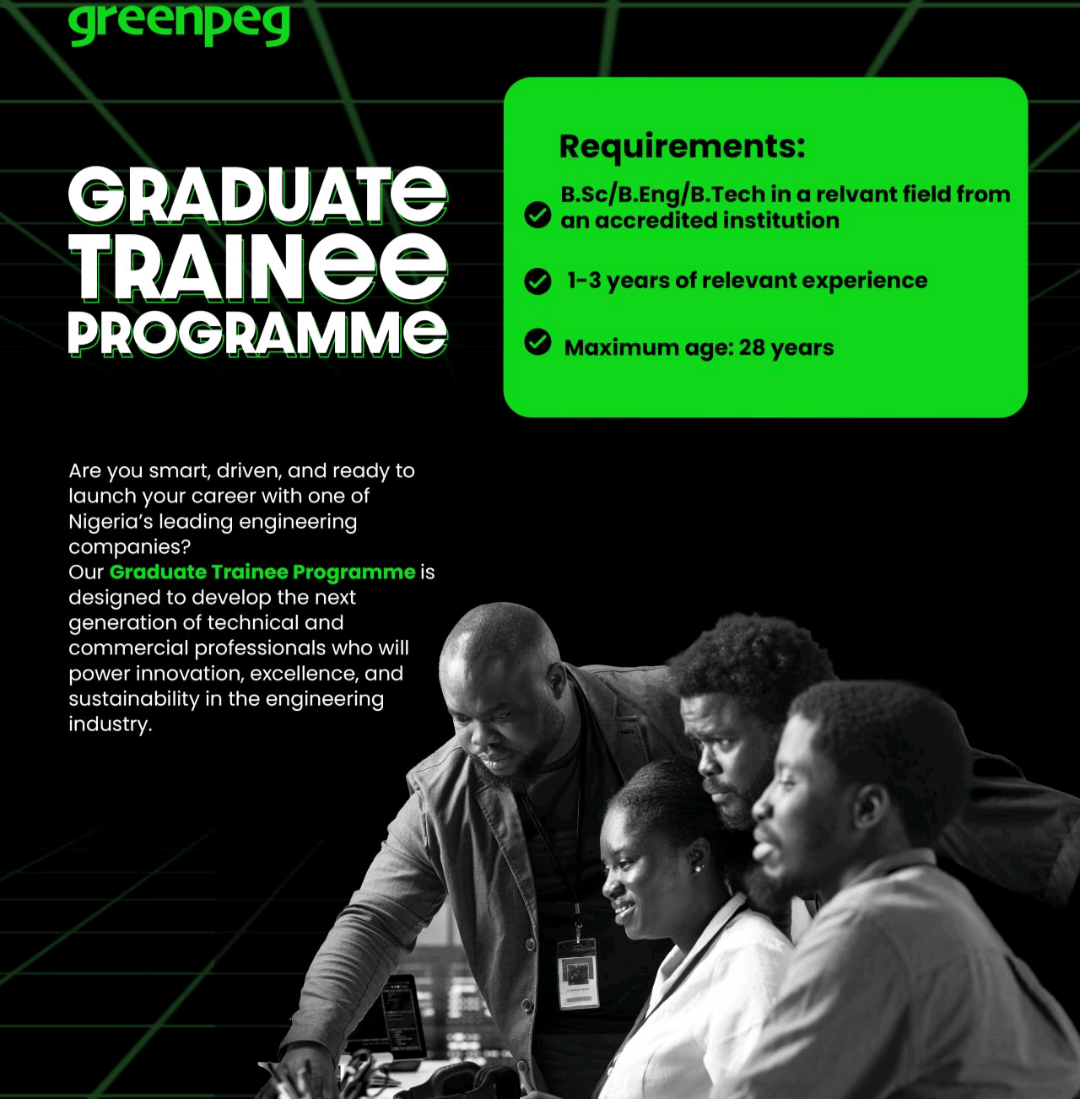 Interested and qualified candidates should forward their CV to: careers@greenpeg.com using “Graduate Trainee” as the subject of the email.