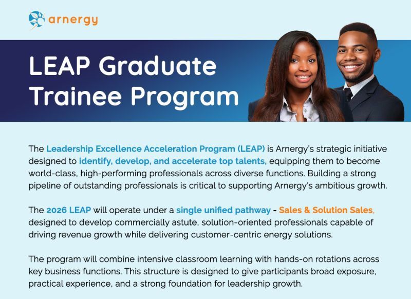 The 2026 LEAP will operate under a single unified pathway – Sales & Solution Sales, designed to develop commercially astute, solution-oriented professionals capable of driving revenue growth while delivering customer-centric energy solutions.