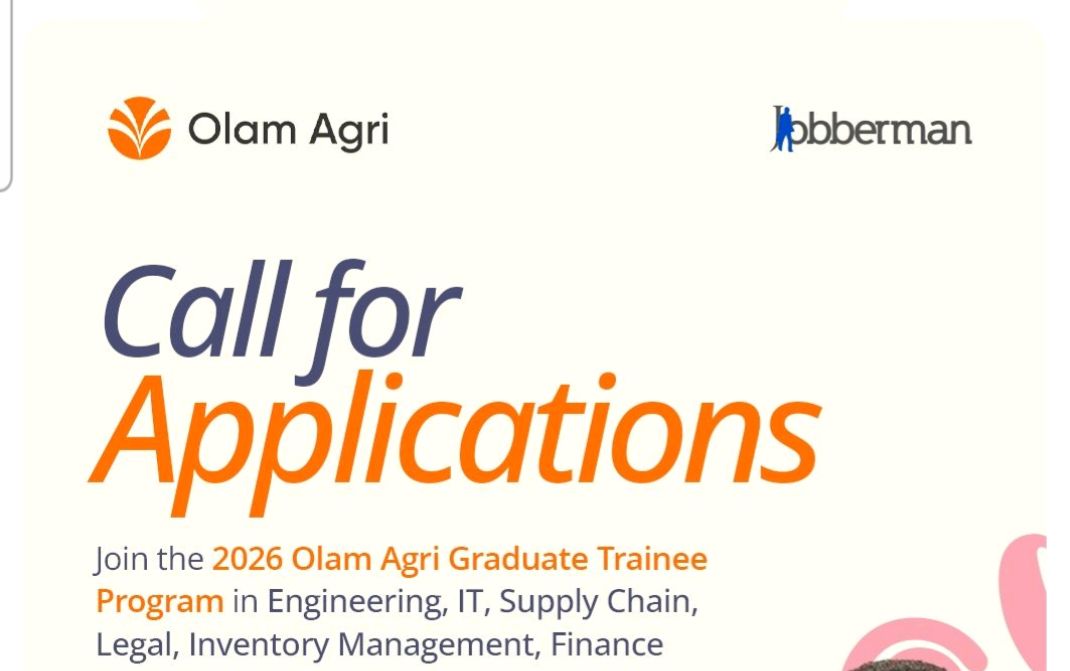 The Olam Agri Graduate Trainee Program is a one-year employment opportunity designed to develop early-career talent through hands-on experience across key functions.