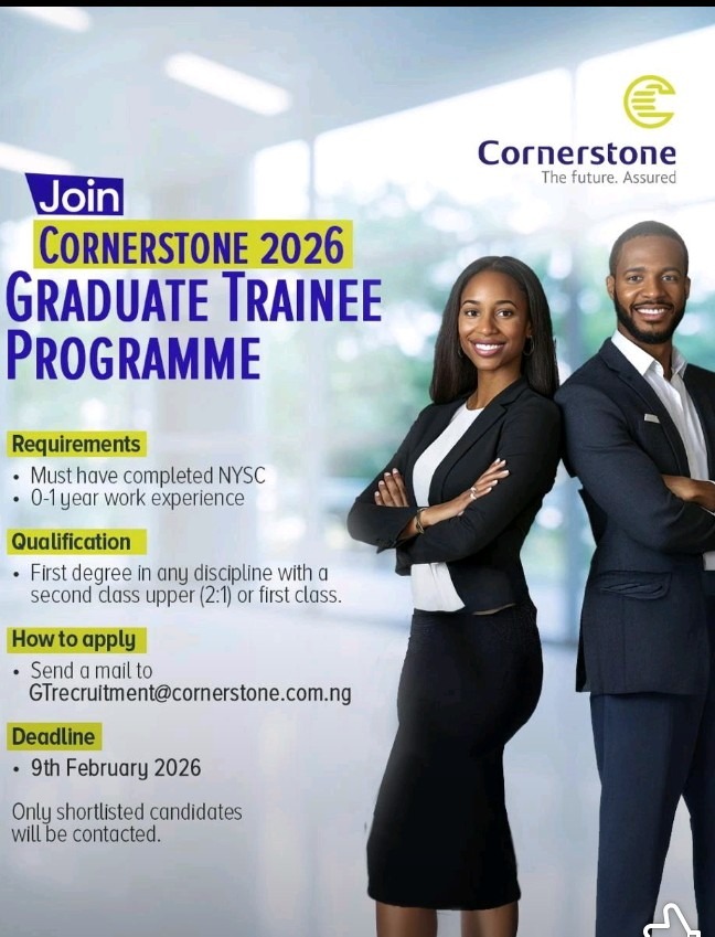 Interested and qualified candidates should forward their CV to: GTrecruitment@cornerstone.com.ng